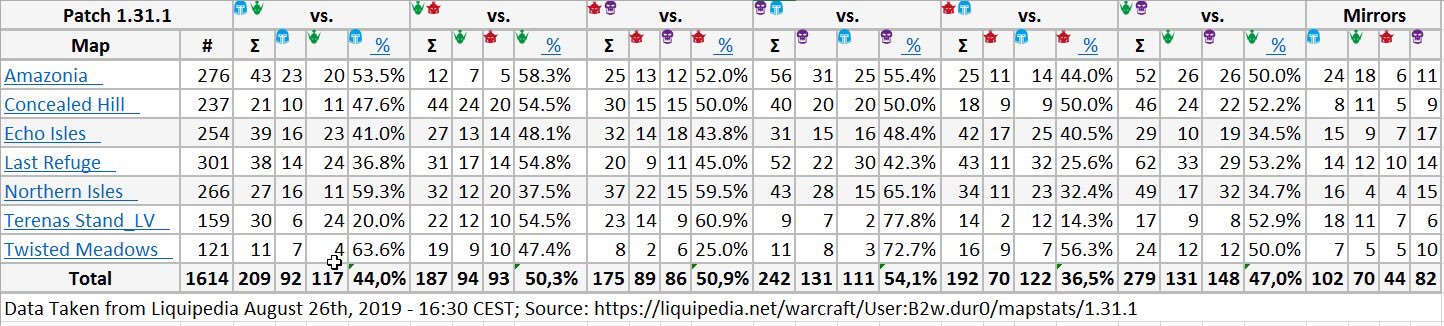 Le 26 août, la communauté a adoré la publication de dur0 sur les statistiques de Liquipedia pour le correctif 1.31.1. Considérant que les données du tournoi sont limitées, les statistiques semblaient équilibrées. Sauf un matchup.